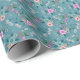 Papier Cadeau Fleurs roses sur motif bleu