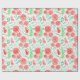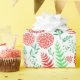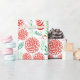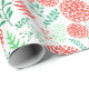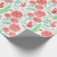Papier Cadeau Fleurs rouges arrondies vert feuille motif