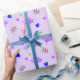 Papier Cadeau Fleurs violettes Coeurs bleus