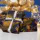 Papier Cadeau Fleurs violettes jaunes sombres et luxuriantes mot