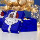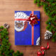 Papier Cadeau flocon bleu de Noël noir père Noël