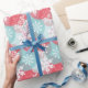 Papier Cadeau Flocons de Noël Rouge Bleu