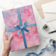 Papier enveloppant avec un champ de fleurs pâles sur un arrière - plan bleu clair. Utilisez pour l'emballage cadeau, les étagères et les tiroirs ou même l'artisanat.