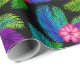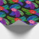 Cravate tropicale aux fleurs d'hibiscus roses et rouges, feuilles de palmiers. Style hawaïen foncé sur arrière - plan noir.