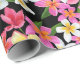 Les fleurs tropicales de plumeria rose, jaune et blanc sur un papier d'emballage arrière - plan noir sont parfaites pour les mariages, douches nuptiales, anniversaires et plus encore.