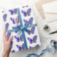 Jewelry, blue, sapphire, sparkling flower butterfly with wing decorated with blue, precious flowers with gold leaves on white background.