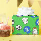 Papier d'emballage à thème football avec un design qui est une illustration de dessin animé avec des fans heureux et aussi des balles de football rebondissant. Les chemises sont en bleu.