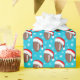 Ce papier d'emballage festif de Noël présente du football habillé de chapeaux de Santa, entouré de flocons de neige blancs étincelants sur un arrière - plan aqua de vacances gai.