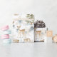 Faites de chaque cadeau un look magique cette saison de vacances! Notre papier d'emballage festif présente un motif adorable et personnalisé de charmants animaux de la forêt dans une scène hivernale fantaisiste. Le design comprend des illustrations d'aquarelle douce de cerfs, de renards et de nounours, tous nichés au milieu de pins enneigés et de délicats feuillages blancs, verts et bleus. Ce design unique et mignon est parfait pour envelopper des cadeaux pour les enfants, les baby showers ou toute personne qui aime un peu le charme des bois. La palette douce et douce de couleurs, vert, marron et bleu, sur un arrière - plan blanc et croustillant, fera ressortir vos cadeaux sous le sapin de Noël.