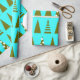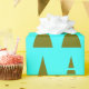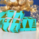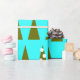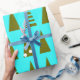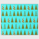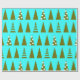 Un motif moderne aux arbres géométriques blancs, dont certains aux ornements blancs enneigés...le tout sur un arrière - plan bleu aqua.