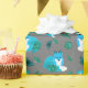 Joli renard onctueux aux papillons et feuilles fait en turquoise et blanc contre un arrière - plan gris.