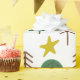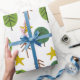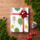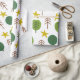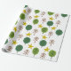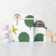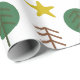 Ce papier d'emballage a un design scandinave à répétition d'une forêt dans les tons marron et vert et jaune étoiles.