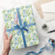 This fun and whimsical wrapping paper features watercolor blue forget-me-nots, daisies and foliage