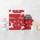 Papier Cadeau Forme De Cerf Blanc En Rouge Avec Feux De Neige Et