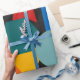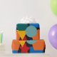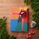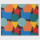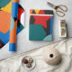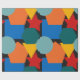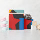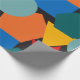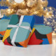 Ce papier d'emballage a une conception Bauhaus de formes aléatoires en bleu, turquoise, jaune, rouge et orange.