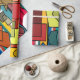 Ce papier d'emballage a une conception inspirée du Bauhaus de formes et de lignes dans différentes nuances de couleurs modernes du milieu du siècle.