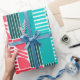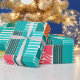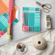 Ce papier d'emballage a un design Bauhaus de formes et de lignes dans différentes nuances de couleurs modernes du milieu du siècle.