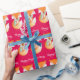Cube de renard en papier d'emballage personnalisé enveloppé chaud motif de design de répétition sur un arrière - plan rose vif rouge. Personnalisez ce papier de fête de saison art renard avec votre propre salutation et nom. Lit actuellement Happy Christmas Claire. Idéal pour vos cadeaux de Noël de à de familles et d'entreprises associées aux renards ou aux animaux. Fabriquerait également de l'enveloppement pour vos animaux de compagnie et cadeaux de Noël. Beau renard blanc peint en aquarelle et dessiné par Sarah Trett.