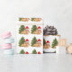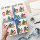 Ce papier d'emballage comporte deux floxes portant leur foulard de fête et leur chapeau de Père Noël. Il y a un arbre de Noël dans l'arrière - plan. Enveloppez vos cadeaux de Noël dans ce papier chéri ou des objets de fêtes créés.