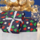 Emballage cadeau bleu marine avec un mignon motif de fraises, fleurs et feuilles