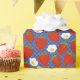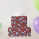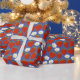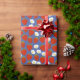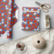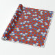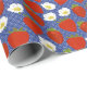 Papier Cadeau Fraises rouges et fleurs blanches Marine et blanc