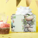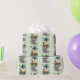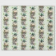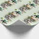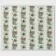 Wrapping paper with a cute St. Patrick's Day image. A green frog with big cartoon eyes sitting on a stone wall. Wearing a green top hat with a shamrock and a little friend sitting on top of his hat.