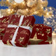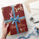 Frohe Weihnachten Allemand Joyeux Étoiles de Noël Rouge et Faux Or Élégant Script, Élégant Papier cadeau de Noël, Ajouter un nom ou un texte