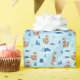 Charming red foxes in scarves wander a snowy blue forest of evergreens and mountains. Whimsical and wintery, perfect for cozy style.