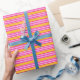 Papier Cadeau Fuchsia et jaune cinq bandes motif