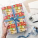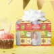 Ce papier d'emballage de Noël mignon dispose d'un cadre photo vertical et est accentué de graphiques de cookies de vacances. Ce design est parfait pour les enfants.