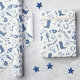 Playful pattern in blue white tones featuring coastal / cowgirl elements (cowgirl boot, hat, horseshoe, horse, stars, bows, cherries, seahorse, starfish, shell, howdy, yeehaw typography) as coastal / beach party / event gift wrap for bachelorette, bridal shower, birthday party, graduation party etc. Small and large pattern size available.