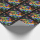 Cette conception amusante et vibrante de papier d'emballage comprend le message "FÉLICITATIONS, CLASSE DE 2023", avec les lettres et les chiffres avec un motif coloré du spectre arc-en-ciel inspiré du gradient. L'arrière - plan dispose d'un motif multicolore inspiré par les feux d'artifice. Un papier comme celui-ci pourrait être utilisé pour envelopper les cadeaux à donner à une fête célébrant un diplôme d'études secondaires, collégiales ou universitaires.