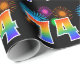 Ce papier d'emballage amusant et dynamique présente un motif coloré inspiré par les feux d'artifice, ainsi que le numéro "74", avec un motif multicolore en dégradé d'inspiration arc-en-ciel, sur un arrière - plan de couleur noire. Un papier comme celui-ci pourrait être utilisé pour envelopper des cadeaux ou des cadeaux donnés pour le soixante-quatorzième anniversaire de quelqu’un, ou peut-être pour le soixante-quatorzième anniversaire de mariage d’un couple, ou pour un autre 74e événement. [~Z0000322]