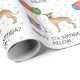 Design à thème d'anniversaire mignon avec dessin animé original de Destei d'une jolie couleur faun italien Greyhound / Chien de race Iggy. A côté du chien il y a des ballons colorés d'anniversaire attachés sur un os de chien et une boîte cadeau de couleur violet et jaune. L'arrière - plan a un motif ludique de confettis pastel colorés sur un arrière - plan blanc. Vous trouverez également une zone de texte personnalisable.