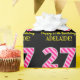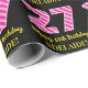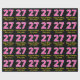 Cette conception amusante de papier d'emballage sur le thème de l'anniversaire comporte un grand nombre de "27" avec un motif à rayures rose clair et rose foncé, ainsi que le message "Joyeux 27e anniversaire", et un nom modifiable. L'arrière - plan est noir de couleur. Un papier d’emballage à thème d’anniversaire comme celui-ci pourrait être une façon amusante d’envelopper un cadeau ou un cadeau pour célébrer le vingt-septième anniversaire de quelqu’un. [~Z0000376]