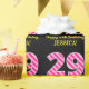 Ce design amusant sur le thème de l'anniversaire est composé d'un grand nombre de "29", avec un motif à rayures rose clair et rose foncé. Il comporte également le message "Joyeux 29e anniversaire", et un nom personnalisé. L'arrière - plan est noir de couleur. Un papier comme celui-ci peut être utilisé pour envelopper des cadeaux donnés à quelqu'un pour célébrer son vingt-neuvième anniversaire. [~Z0000376]