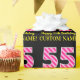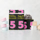 Ce design amusant de papier d'emballage sur le thème de l'anniversaire comporte un grand nombre de "55", avec un motif rose foncé et rose clair rayures. Il comporte également le message "Joyeux 55e anniversaire", et un nom modifiable. L'arrière - plan est noir de couleur. Un papier d'emballage amusant comme celui-ci pourrait être utilisé pour envelopper des cadeaux donnés à quelqu'un pour célébrer leur 55e anniversaire. [~Z0000376]