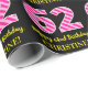 Ce design amusant de papier d'emballage sur le thème de l'anniversaire comporte un grand nombre de "62", avec un motif rose foncé et rose clair rayures. Il comporte également le message "Happy 62nd Birthday," et un nom personnalisé. L'arrière - plan est noir de couleur. Un papier comme celui-ci peut être utilisé pour donner un cadeau ou un cadeau en l’honneur du soixante-deuxième anniversaire de quelqu’un. [~Z0000376]