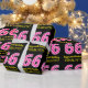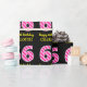 Ce design amusant de papier d'emballage sur le thème de l'anniversaire comporte un grand nombre de "66", avec un motif rose foncé et rose clair rayures. Il comporte également le message "Joyeux 66e anniversaire", et un nom personnalisé. L'arrière - plan est noir de couleur. Un papier d’emballage à thème d’anniversaire comme celui-ci pourrait être une façon amusante d’envelopper un cadeau ou un cadeau pour célébrer le 66e anniversaire de quelqu’un. [~Z0000376]