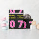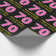 Ce design amusant sur le thème de l'anniversaire de papier d'emballage comporte un grand nombre de "70", avec un motif rose foncé et rose clair rayures. Il comporte également le message "Joyeux 70e anniversaire", et un nom personnalisable. L'arrière - plan est noir de couleur. Un papier comme celui-ci peut être utilisé pour donner un cadeau ou un cadeau en l’honneur du soixante-dixième anniversaire de quelqu’un. [~Z0000376]