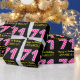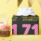 Ce design amusant sur le thème de l'anniversaire est doté d'un grand numéro "71", avec un motif à rayures rose clair et rose foncé. Il comporte également le message "Joyeux 71e anniversaire", et un nom personnalisé. L'arrière - plan est noir de couleur. Un papier d’emballage à thème d’anniversaire comme celui-ci pourrait être une façon amusante d’envelopper un cadeau ou un cadeau pour célébrer le 71e anniversaire de quelqu’un. [~Z0000376]