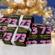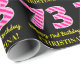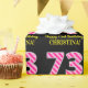 Ce design amusant sur le thème de l'anniversaire est doté d'un grand numéro "73", avec un motif à rayures rose clair et rose foncé. Il comporte également le message "Joyeux 73e anniversaire", et un nom personnalisé. L'arrière - plan est noir de couleur. Envelopper du papier comme celui-ci peut être une façon amusante d'envelopper un cadeau d'anniversaire ou un cadeau donné à quelqu'un qui célèbre son soixante-treize anniversaire. [~Z0000376]