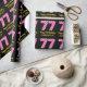 Cette conception amusante de papier d'emballage sur le thème de l'anniversaire comporte un grand numéro "77" avec un motif rose clair et rose foncé rayures, avec le message "Happy 77th Birthday,", et un nom modifiable. L'arrière - plan est noir de couleur. Un papier d’emballage à thème d’anniversaire comme celui-ci pourrait être utilisé pour donner un cadeau ou un cadeau pour célébrer le soixante-dix-septième anniversaire de quelqu’un. [~Z0000376]