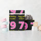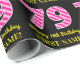 Ce design amusant de papier d'emballage sur le thème de l'anniversaire comporte un grand numéro "79" avec un motif rose clair et rose foncé rayures, avec le message "Happy 79th Birthday," et un nom modifiable. L'arrière - plan est noir de couleur. Un papier d'emballage amusant comme celui-ci pourrait être utilisé pour envelopper des cadeaux donnés à quelqu'un pour célébrer leur 79e anniversaire. [~Z0000376]