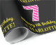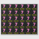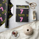 Ce design amusant de papier d'emballage sur le thème de l'anniversaire comporte un grand nombre de "7", avec un motif rose foncé et rose clair rayures. Il comporte également le message "Joyeux 7e anniversaire", et un nom personnalisé. L'arrière - plan est noir de couleur. Un papier d'emballage amusant comme celui-ci pourrait être utilisé pour envelopper des cadeaux donnés à quelqu'un pour célébrer leur 7ème anniversaire. [~Z0000376]