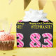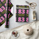 Ce design amusant de papier d'emballage sur le thème de l'anniversaire comporte un grand nombre de "83", avec un motif à rayures rose foncé et rose clair. Il comporte également le message "Joyeux 83e anniversaire", et un nom personnalisé. L'arrière - plan est noir de couleur. Un papier d’emballage à thème d’anniversaire comme celui-ci pourrait être utilisé pour donner un cadeau ou un cadeau pour célébrer le quatre-vingt-troisième anniversaire de quelqu’un. [~Z0000376]