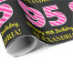 Ce design amusant de papier d'emballage sur le thème de l'anniversaire comporte un grand nombre de "95", avec un motif à rayures rose clair et rose foncé. Il comporte également le message "Joyeux 95e anniversaire", et un nom personnalisé. L'arrière - plan est noir de couleur. Un papier d'emballage amusant comme celui-ci pourrait être utilisé pour envelopper des cadeaux donnés à quelqu'un pour célébrer leur 95e anniversaire. [~Z0000376]