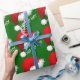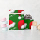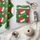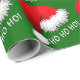 Unique, tendance, tendance, tendance, joli et original papier d'emballage. Avec le casquette du Père Noël rouge et "HO HO HO !" texte sur arrière - plan vert. Cette enveloppe-cadeau originale, classe, chic, élégante et parfaite mettra un sourire sur les visages des jeunes et des vieux quand ils dévoileront leurs cadeaux de Noël de décembre.