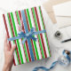 Papier Cadeau Fun Vert, Blanc, Rouge Lignes inspirées Noël