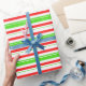 Ce design d'inspiration Noël est orné d'un motif de rayures aux couleurs rouge, blanc et vert. Un papier comme celui-ci peut être utilisé pour préparer des cadeaux ou des cadeaux donnés pour célébrer un anniversaire, un mariage, un anniversaire ou tout autre événement.